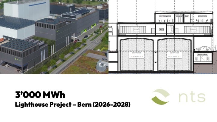 Our first commercial plant will be the largest battery in Switzerland by energy capacity. Located in Switzerland and scheduled for commissioning in 2028, the project features two silos housed within a dedicated building. Developed in partnership with an operator of critical infrastructure with continuous baseload demand, the system will serve as a reliable backup solution while enabling energy arbitrage.
